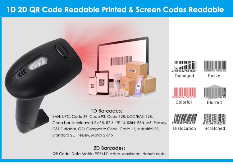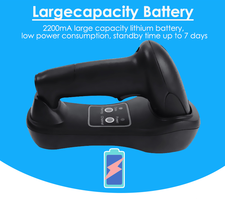 Universal USB charging support: In addition to wireless induction charging, the scanner can also be charged using a universal USB charger. This means you can charge the scanner using various devices like a mobile phone charger or computer USB interface.These charging options provide flexibility and convenience in charging the barcode scanner.